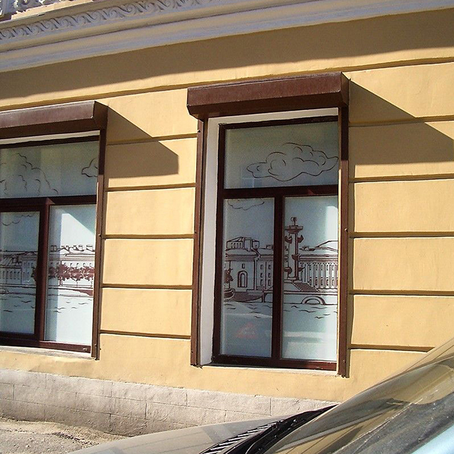 Разработка визуальных решений для окон, перегородок, витрин и фасадного остекления.