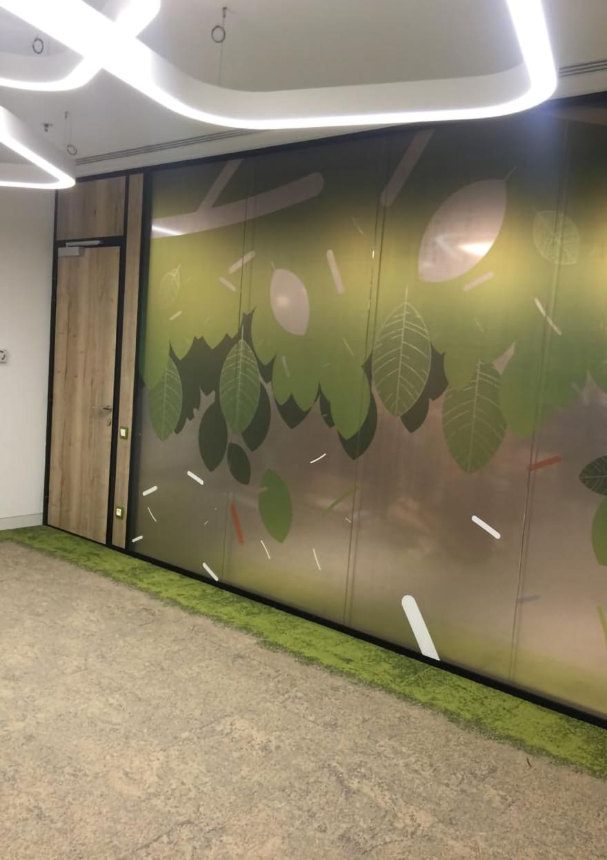 Цель — сократить видимость между кабинетами и коридором, фирменное изображение.