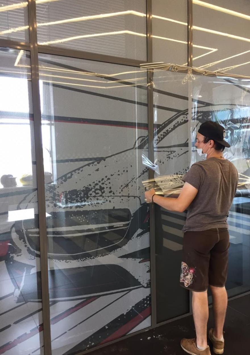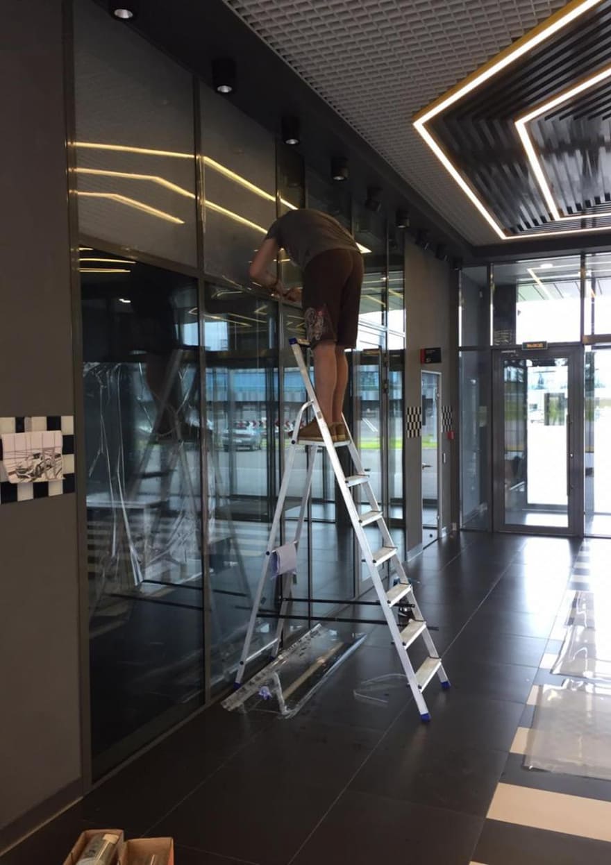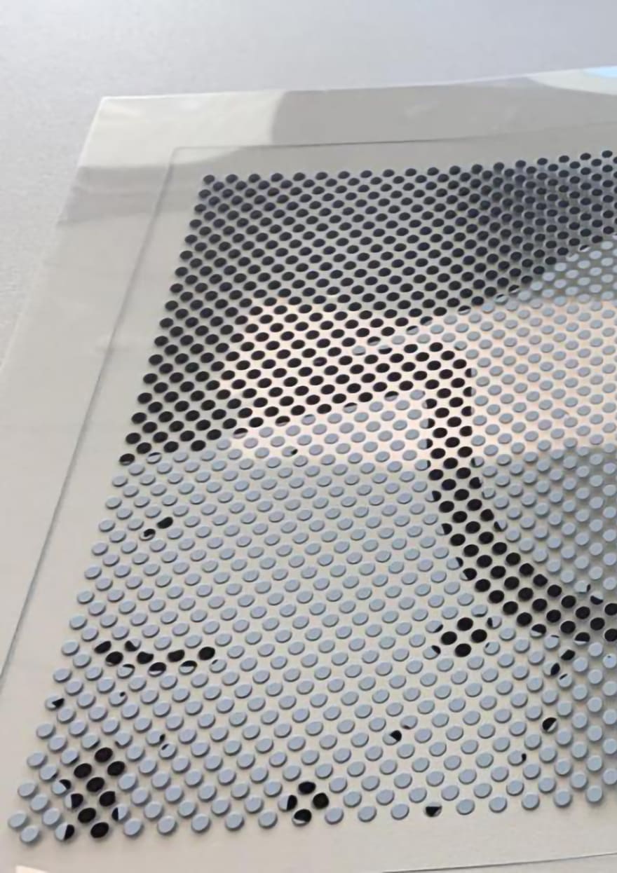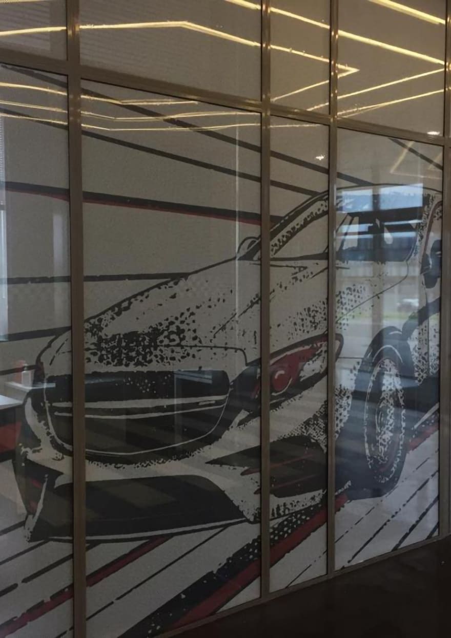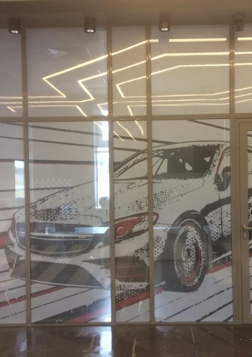Установка УФ-фотопечати на перегородки. Печать рисунка перфорацией на плёнке.