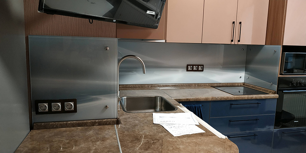 Установка фартука с фотопечатью в частной квартире.