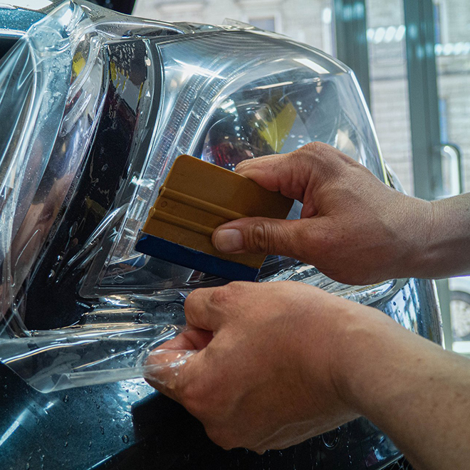 Такой подход делает бронирование фар обоснованным и долгосрочным решением для водителей, которым важно сохранить безопасность, внешний вид и ресурс автомобиля без дополнительных затрат. При необходимости плёнка может быть удалена без повреждения поверхности фары, что делает бронирование полностью обратимым и безопасным решением.