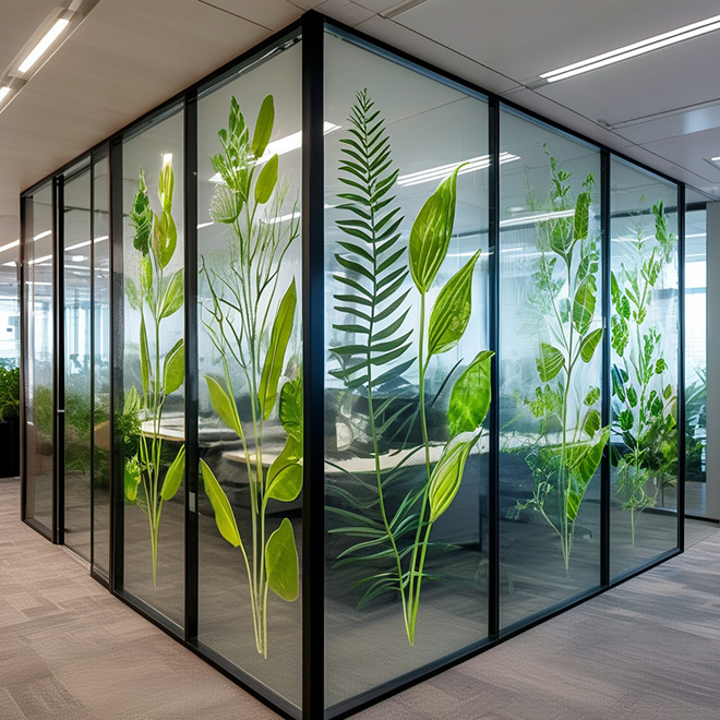 В работе применяются различные виды плёнок — прозрачные, матовые, глянцевые, самоклеящиеся и специальные технические плёнки. Они используются для интерьерной графики, витрин, фасадных решений, брендирования и декоративных элементов.
