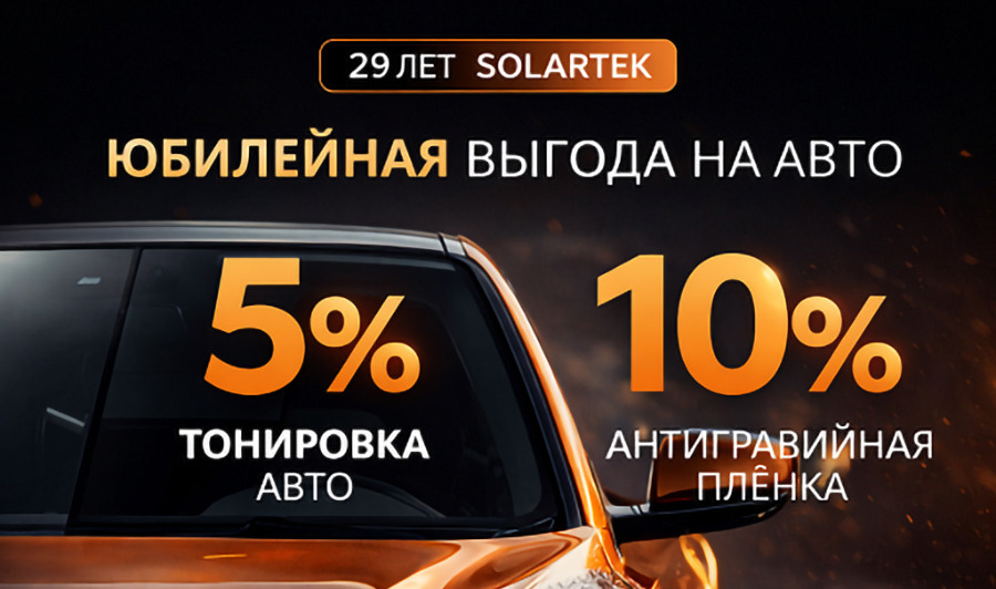 В честь дня рождения компании SOLARTEK мы запускаем специальные условия на популярные услуги для автомобиля.